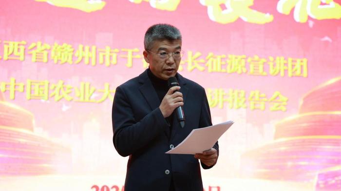 10月29日下午,“‘京’彩文化·青春绽放”——长征源宣讲团“永远的长征”中国农业大学专场报告会在食品学院报告厅举行。学校党委副书记王勇,党委常委、宣传部部长赵竹村,机关党委书记韩晓燕,江西赣州于都县委常委、宣传部部长、长征源宣讲团名誉团长刘晓阳,于都县社联主席、长征源宣讲团常务副团长黄蕾,学院师生代表以及学校党委理论学习宣讲团、“春燕秋鸿”文化先锋使者团、第五期“青干班”学员代表、“青教计划”教师代表共400余人共同参加了报告会。