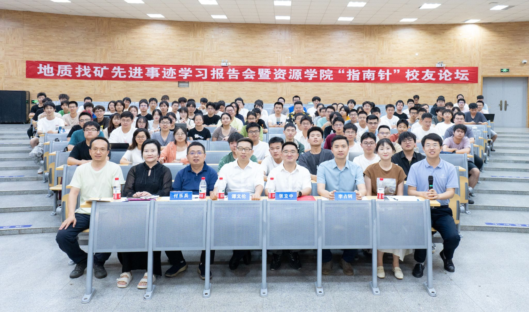 党支部坚持党建与业务深度融合、相互促进,将组织优势转化为育人实效和发展动能,通过党员岗位实践、品牌活动赋能、榜样故事传播等多种形式,持续强化支部的政治引领和党员的责任担当意识。实施党员设岗定责。党支部通过“科学设岗、搭建平台、闭环管理”三位一体路径,在党建工作、班团建设、学风服务等领域科学设置12个岗位,构建了“年初报岗—全年践岗—党日示岗—年终述岗”的闭环管理机制,有效激发党员的主体意识和先锋作用,实现支部党员常态化联系师生、服务师生;党支部驻班党员岗年查课20余次,园区建设岗参与文明联检走访宿舍110余间,成员在国际会议、社区等志愿服务累计时长超1500小时。开展“红星引领”活动。党支部组建资源能源红星讲师团,聚焦能源资源安全、重要回信贺信精神,聚焦学科特色,强化地质报国精神内核,每年开展党的创新理论、成长规划、课程辅导、升学就业等专题分享20余场,覆盖1200余人次;党支部成员连续15年参与承办“寻找李四光·卓越地质师培育工程”活动,连续6年参加“资源学子西部行”社会实践,将能源资源安全重要论述内化于心、外化于行,引导全体成员树立“地质报国 资源强国”远大志向。打造找矿育人故事品牌。党支部依托导学团队邀请赵鹏大院士、基层找矿功臣欧阳永棚、李四光先生外孙女邹宗平女士等院士专家和优秀校友走上讲台,为广大学子开展“地质找矿先进事迹报告会”,构建“院士领航-校友示范-青年传承”多维育人主体,打造地质找矿精品课堂,累计开展报告会13场,受众超2000人次。