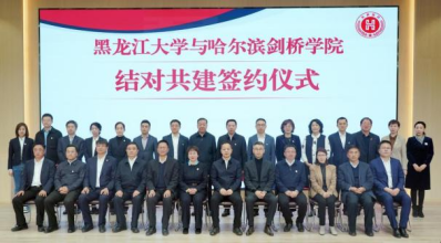 2024年,哈尔滨剑桥学院与黑龙江大学举办结对共建签约仪式,签订新版共建协议