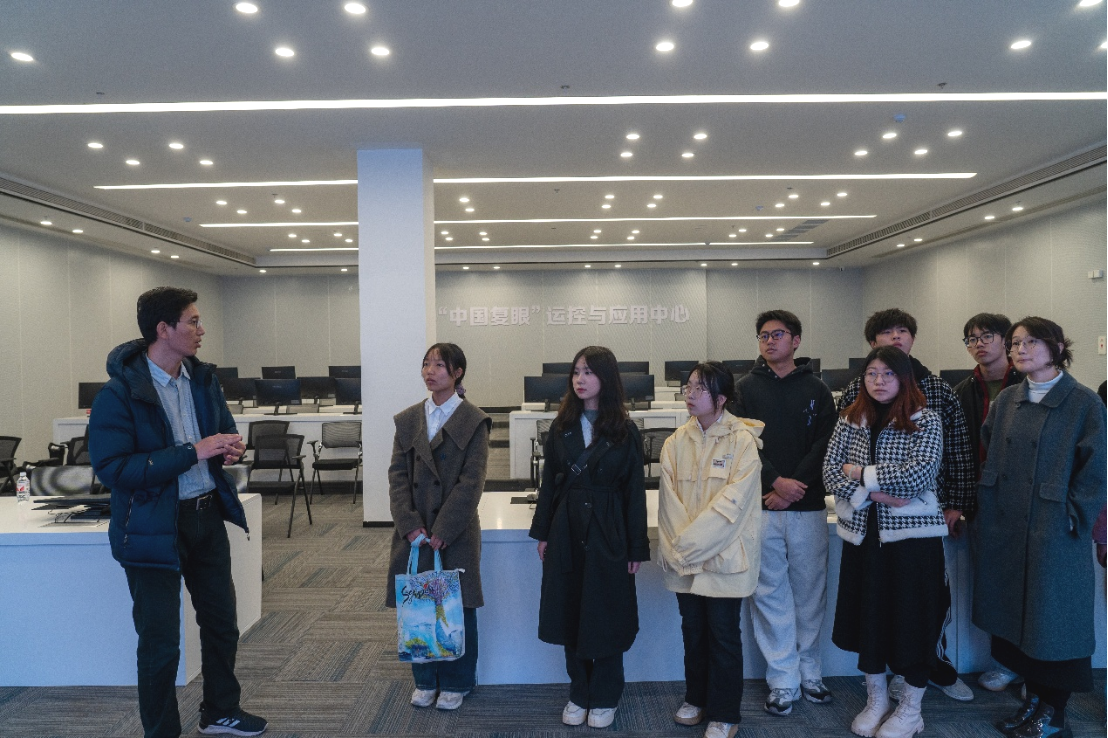 师生在“中国复眼”运控与应用中心现场聆听讲解