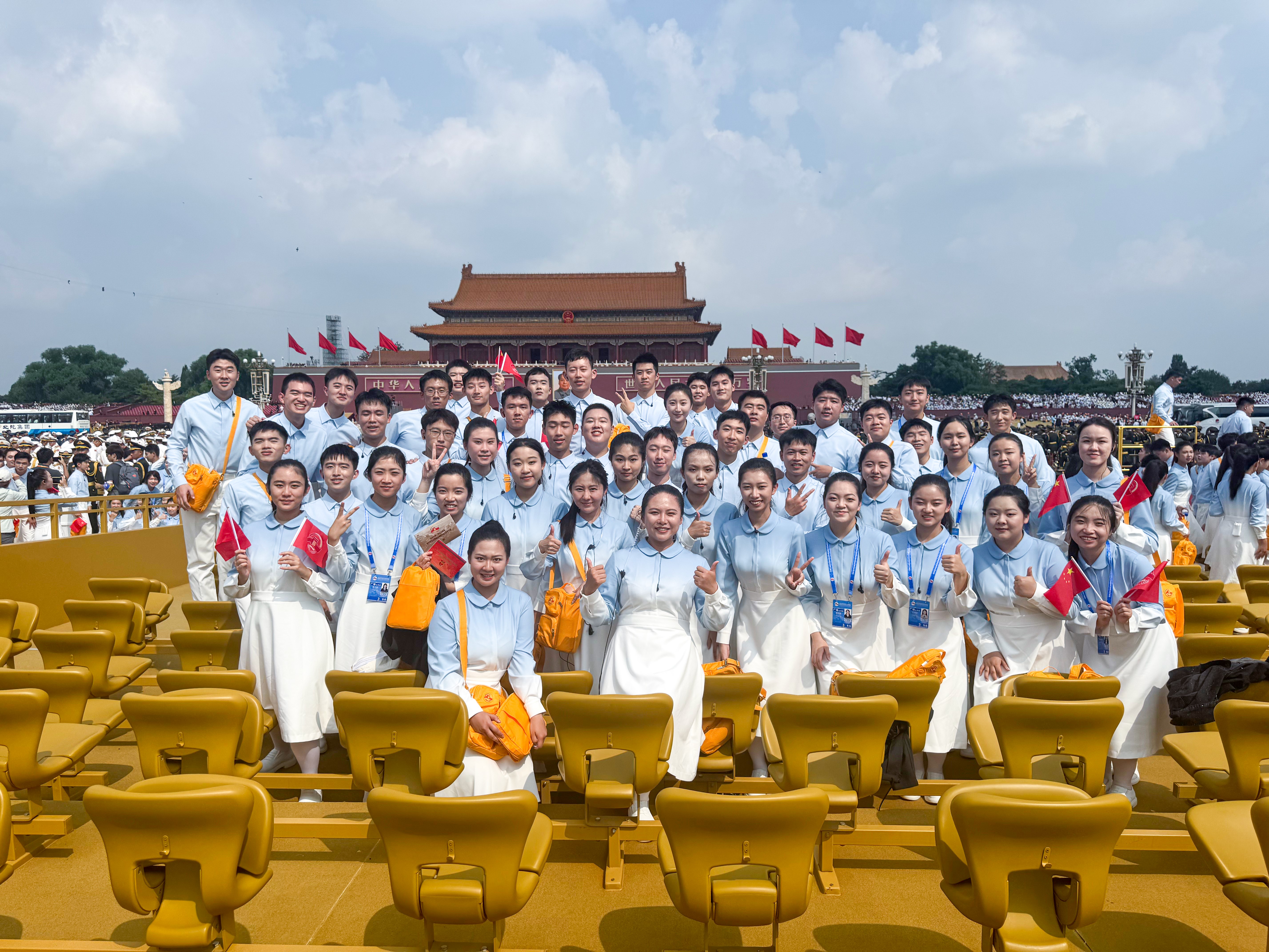 学校213名师生参与中国人民抗日战争暨世界反法西斯战争胜利80周年纪念活动志愿服务和合唱团