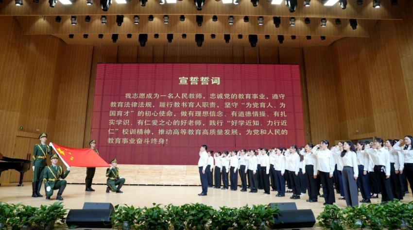 强化理论武装,筑牢育人根基。学校党委坚持把习近平新时代中国特色社会主义思想作为铸魂育人的总纲领,坚持将思政工作作为生命线,通过健全“第一议题”制度、理论学习中心组学习、教职工政治理论学习等机制,实现党的创新理论武装全覆盖。持续增强师生员工的政治认同、思想认同、理论认同、情感认同。配齐配强专职思政课教师,博士化率达到70%以上,获批省级思政课名师工作室3个,建成省级课程思政教学研究示范中心1个,切实筑牢立德树人主阵地。