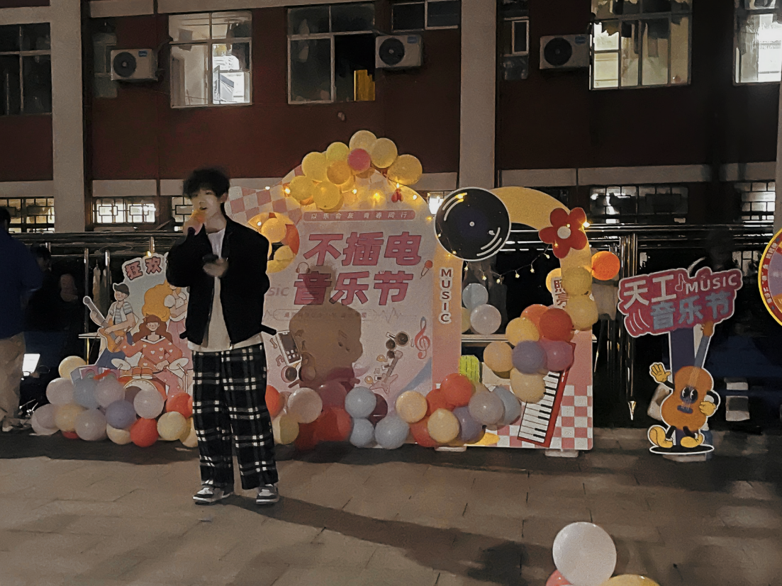 以美育润心为抓手,天工社区党支部牵头举办“不插电”音乐节,以吉他、手鼓等原声乐器演绎《美丽中国》《我和我的祖国》等曲目,在无电子修饰的纯粹旋律中传递家国情怀,上百名师生挥舞国旗合唱的场景成为校园文化经典瞬间。社区党支部书记张来鹏说:“‘不插电’既是音乐形式的回归,更是扎根生活的育人初心体现。”