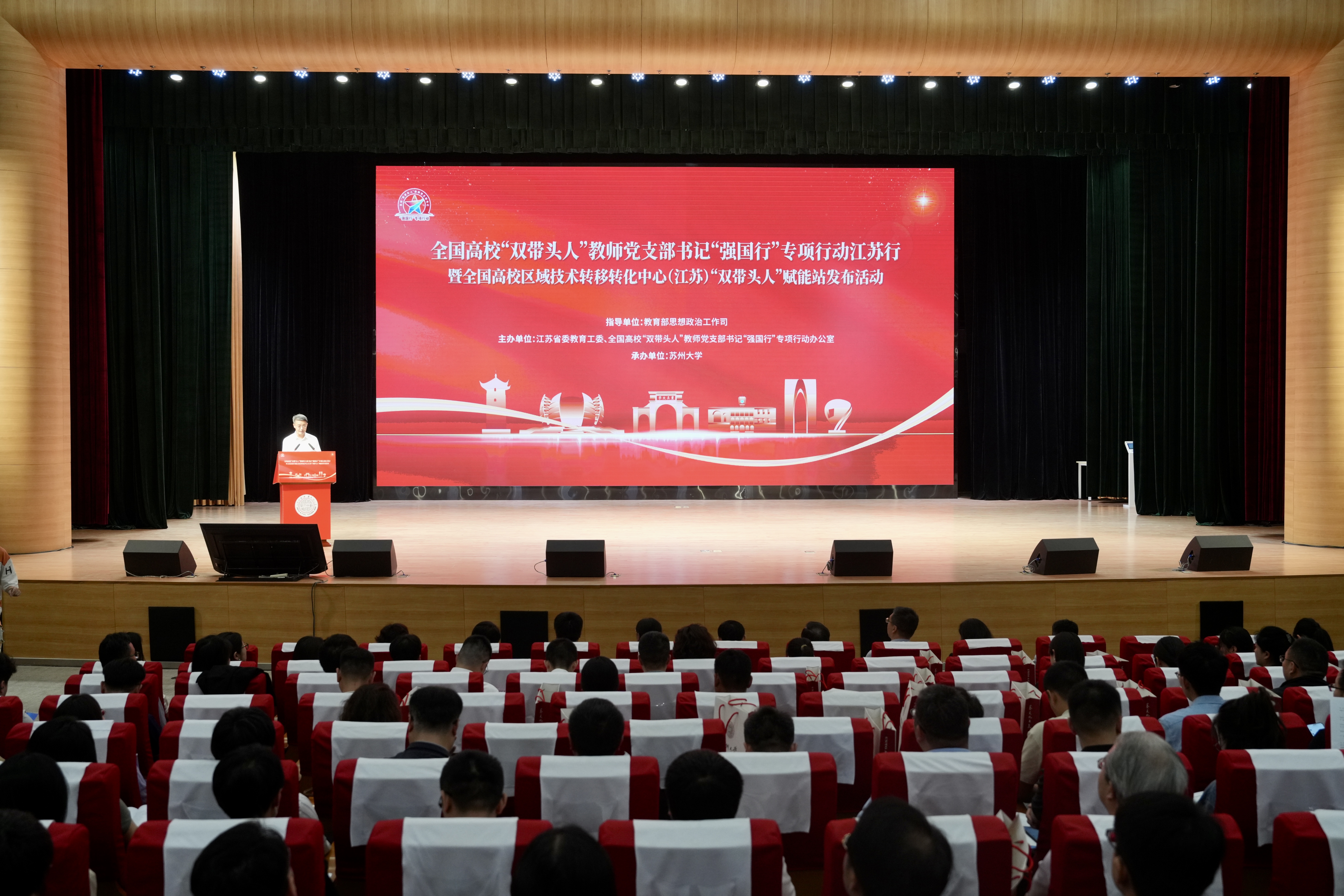 5月22日,全国高校“双带头人”教师党支部书记“强国行”专项行动江苏行暨全国高校区域技术转移转化中心(江苏)“双带头人”赋能站发布活动在苏州大学举行。省委教育工委副书记、省教育厅党组成员潘漫,全国高校“双带头人”教师党支部书记“强国行”专项行动办公室主任、南京大学党委副书记焦瑞华出席并讲话,全国高校思想政治工作网负责人出席。