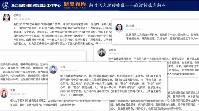 1月16日,曲建武教授在浙江的讲座在全省辅导员中激起广泛回响。许多辅导员在“浙里思政”平台发表感想,连续多日热度不减。