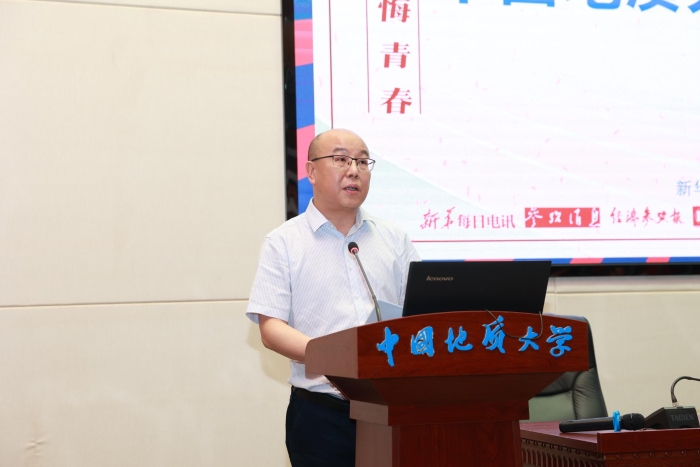 刘卫红对“新锐青年说”活动进行介绍。他表示,此次活动采取对话交流、融合互动的方式,产生思想的火花、业务的共振,帮助青年学生加深对专业、职业和事业的理解,引导其树立正确的政治方向、舆论导向、价值取向。他希望,湖北分社能够与地大在品牌建设、形象展示、对外宣传、思政教育、培训实践等方面开展深入合作,为学校各项事业发展提供舆论支持,凝聚精神力量。