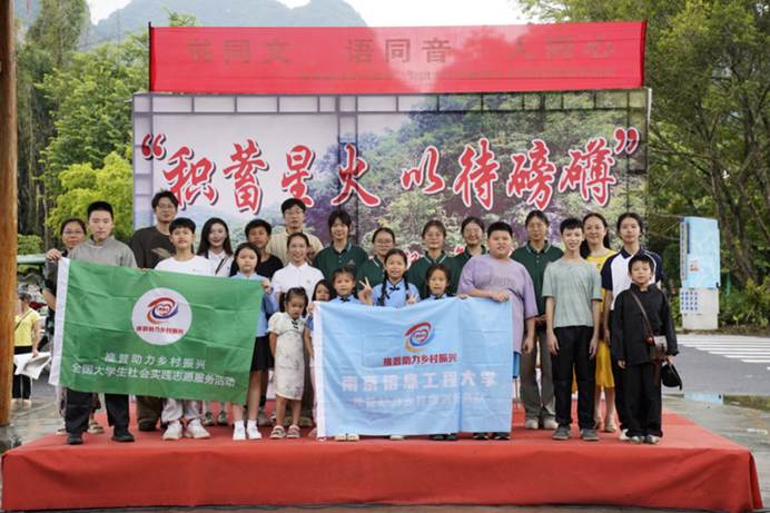 坚持知行合一,推动实践育人走深走实。每年暑期组织近200支小分队开展铸牢中华民族共同体意识主题“三下乡”活动,“推普助力乡村振兴”小分队连续三年获评教育部全国重点团队。南信大中华民族传统文化社团获评省“十佳”社团。南信大研究生支教团连续十年派遣近百名学子赴广西壮族自治区、宁夏回族自治区开展爱心支教服务工作。学校还构建“大手拉小手 ‘铸牢’齐步走”大中小学思政一体化教育校本课程体系,分学段设置包括红色文化、传统文化、气象科普、特色思政、法治教育等课程,活动参与师生达12000人。组织民族预科班学生前往扬州中国大运河博物馆开展“行走的思政课”,面向各族学生,定期组织赴南京秦淮非遗馆、扬州邵伯镇等实践基地开展研学。遥感与测绘工程学院团队深入浙江丽水畲族自治县,在挖掘“畲族革命老妈妈”钟金钗等典型事迹的同时,与当地博物馆、党群服务中心建立了长期联系。