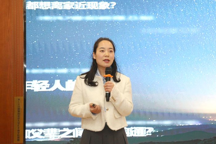 卢娇娇以《2049与当代青年学生》为题,深入解读了实现中华民族伟大复兴中国梦奋斗目标的重要意义,并从“站起来、富起来、强起来”三个历史维度回顾了不同时代青年的历史使命。她指出,要在回答时代问题中明确个人使命,在融入国家发展中实现个人成长,努力做有理想、有本领、有担当的新时代青年。