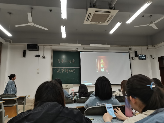 (如图为蒋欣然同学的主题演讲以及全班观看视频,由胡梦雨同学于现场拍摄)