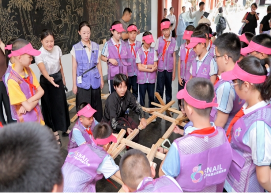 团队将AIGC技术全过程融入师范生跨学科学习,通过智能化、个性化培养模式,让师范生在行走课堂中承担“智能化小先生”角色。在2024年8月19日至29日的琼山历史文化名城研学活动中,30名师范生运用人工智能技术辅助教学,指导100余名中小学生开展铜壶滴漏制作(科学)、蓝晒技术体验(艺术)、投石机制作(劳动)等跨学科实践,在“行走+智能”的教学过程中深化对新时代教师职业的理解和认同。