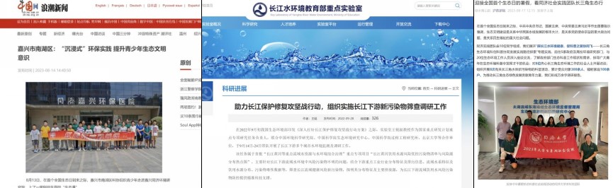在活动中,产出5篇新闻报道和8篇公众号推送,在长江水环境教育局重点实验室、同济大学环境科学与工程学院、同济大学团委实践部、科创南湖、中国网、嘉兴同济环境研究院、青春环境、新民晚报金海岸、新民晚报长三角工作室、网易等多个平台上发表,阅读量已达五千余。