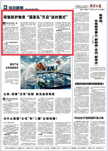 (纤维材料改性国家重点实验室(东华大学)战疫攻关事迹科技日报报道)