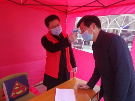 2020年3月10日,金华丽泽花园东门,学院党委书记、支部党员刘星喜同志参与“战‘疫’先锋”志愿者活动