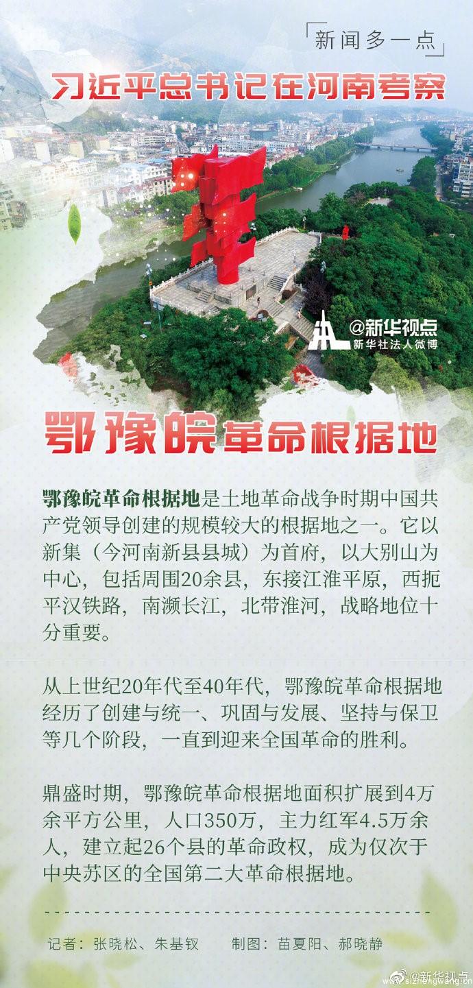 习近平总书记16日在河南省考察调研。当天下午,他首先来到位于新县的鄂豫皖苏区首府烈士陵园,向革命烈士纪念碑敬献花篮,瞻仰革命烈士纪念堂。随后,他参观了鄂豫皖苏区首府革命博物馆,并看望了当地红军后代、烈士家属代表。