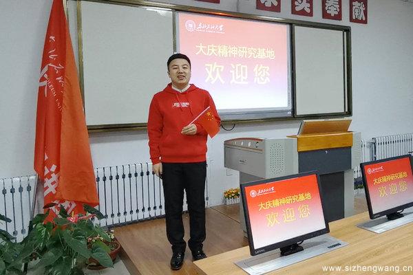 疫情发生前,宣讲团成员在学校大庆精神育人展馆实训室中作宣讲