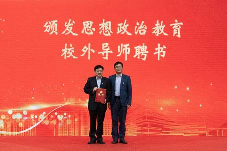 校党委副书记宋来新为姚喜双教授颁发了北京化工大学大学生思想政治教育校外导师聘书。