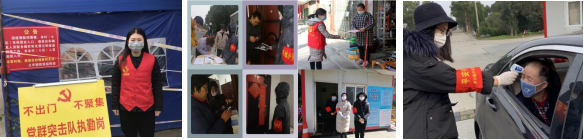 “药苑·朗读者”的22名学生党员和入党积极分子,自发组建“战疫中的红星闪药”抗疫阻击战先锋队,担任宁波、义乌、衢州、绍兴等地的居家防疫志愿者,协助开展体温检测、宣传防疫知识、医护人员子女寒假陪护等志愿工作,累计志愿服务时长达1500余小时,服务人群近2万名。“当听到社区里因防疫工作人手不足,正在招募志愿者时,我第一时间报了名,因为我是一名中共党员,在国家和人民需要的时候,我要守土有责、守土尽责。”本科生党员郑诗雨说。同时,还有手写抗疫承诺书表达“战疫”决心;征集“抗疫”感言;为战疫捐款4000多元等各类战疫事迹。