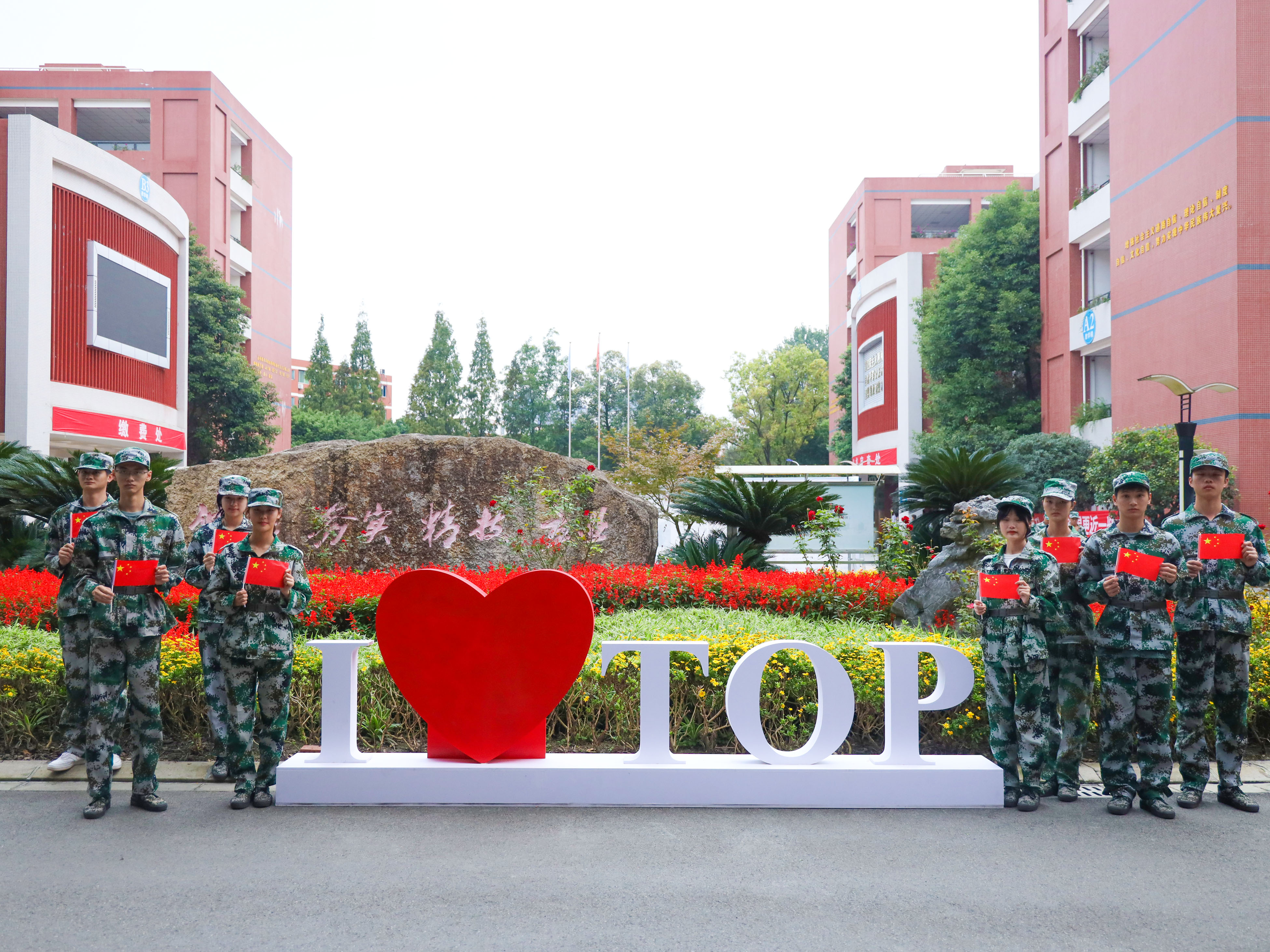 学校学子还用无人机悬挂国旗飞过校园大门、教学楼前、田径场、球场……鲜艳的五星红旗随无人机在学校上空高高飘扬。托普学子用满满的仪式感庆祝祖国73岁诞辰。