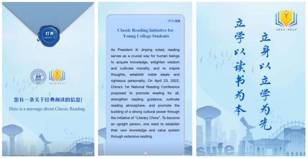 “多元悦读”广邀师生及校友群体参与,以多样化的阅读活动为养成“日读经典”阅读习惯提供了内容保障,也营造出书香校园的浓郁氛围,展现出“我在上财读经典”的青春学子风貌。