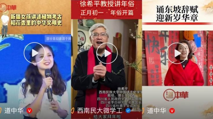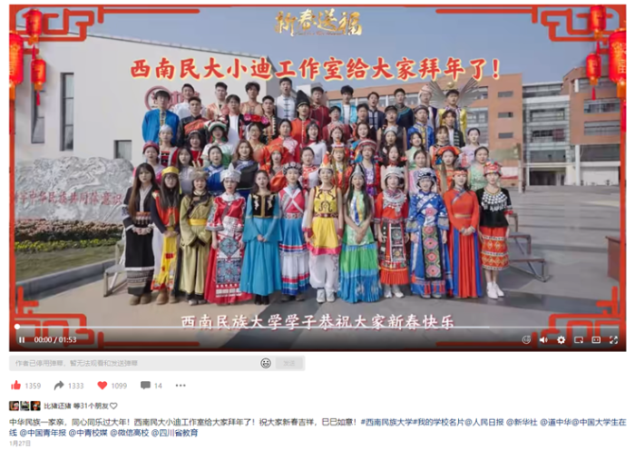 “诗词文脉”栏目:为增强中华文化符号,工作室启用新鲜面孔,以“诗词”为切入点,结合四川特色文化符号东坡,在春节期间推出“诗词说新春”“了解从诗词里走来的古韵元宵”等主题视频,讲解诗词在不同文化背景中的特殊意义,两期视频分别在“道中华”文宣平台和“西南民大微学工”首发,浏览量近30万,点赞量、转发量、红心量累计近1万,受到一致好评。