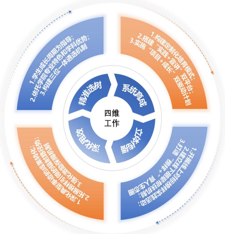 通过“定制化、项目化、系统化”培养路径,构建典型成长支持体系,推动典型从个体优秀向群体带动升级。一是构建定制化培育模式。大一注重理想信念教育,通过导师导学、朋辈帮扶引导学生明确发展方向;大二聚焦能力提升,开展科创训练、社会实践与专业竞赛,夯实综合素质基础;大三强化特色发展,鼓励学生在专业深耕与跨学科探索中凝练方向;大四聚焦价值引领与生涯规划,通过校友导引、就业指导和典型示范,结合学生发展阶段提供针对性资源支持。二是搭建“实践+宣讲”双平台。立足工科学校人才培养特色,依托“理响青春”“朋辈引领”宣讲团等,组织典型参与榜样进校园、朋辈分享会等活动,年均开展宣讲20余场,覆盖学生2万余人次。依托“两节+两季”即文化艺术节、科技节,开学季和毕业季开展系列主题教育活动,将典型事迹融入校园文化品牌建设,营造向上向善的育人氛围。三是实施“项目+成长”双驱动计划。围绕学生成长需求,遴选具有示范效应的成长项目,如创新创业训练、志愿服务品牌培育项目等,推动典型在实践中锤炼本领、彰显价值,将季度过程性评估与年度综合考核相结合,持续优化培育方案。