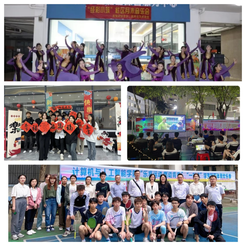 一是深耕党建红色文化,厚植家国情怀。创新打造“红椰讲堂”“红椰创意坊”“红椰影院”等特色文化载体,通过红色故事宣讲、革命主题创意创作、经典红色影片展播等系列教育活动,每学期开展红色主题活动 30 余场,引导学生坚定理想信念,厚植家国情怀;二是打造书香文化阵地,涵养求知品格。精心开辟社区“书香驿站”,优化阅读空间布局,配齐多元书籍资源,推出“悦读书乡”“红色经典读书分享会”等系列文化精品活动,定期开展读书沙龙、心得交流、知识竞赛等活动50余场,让书香浸润社区每个角落;三是传承中华优秀传统文化,提升人文素养。依托“道德讲堂”“美育大讲堂”等平台,搭建集人文交流、学术探讨、科技展示于一体的综合性文化交流阵地,常态化开展“经典诵读”“文化书画艺术展”等特色活动,推动中华优秀传统文化与社区文化建设有机融合,累计参与学生达1万多人次;四是培育身心健康文化,赋能全面成长。以“第二课堂”为抓手,策划开展“乐享运动 燃动青春”体育欢乐季、“活力财经、炫动青春音乐会”等系列活动;组建学生轻骑巡演小队,每月走进学生社区开展文艺演出、艺术体验等活动,全年在学生社区开展各类文体活动达 40 余场,让学生在运动中强健体魄,在艺术中陶冶情操。