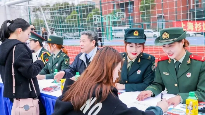 上海杉达学院2名退役学生积极响应“学生社区学生管理”的理念,主动发起并号召了55名退役士兵组建“橄榄绿”社区平安志愿者队。他们开展社区夜间巡逻、禁烟场所监督、消防安全检查和演练,协助维护校园出入治安等工作,成为学校平安校园“人防”队伍中的生力军,与后保队伍、学工队伍共同维护社区日常安全,提升师生安全素养,植根网络安全意识,发挥国防育人铸魂作用。