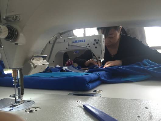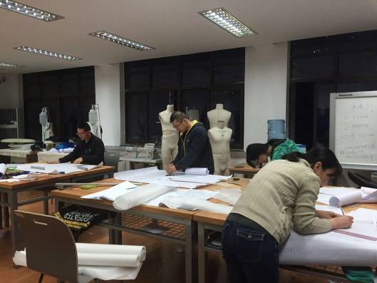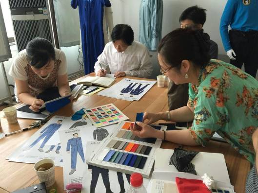 “上得了讲台,下得了车间”的团队——航天员服装采用连体服整体造型,需要较大活动自由度并兼顾美观合体性,本身对于工艺结构方面的要求高。团队王云仪教授和杜劲松、夏明、李小辉等副教授根据人体肢体活动功能的规律将服装分解为多个设计区域,针对各个区域的特征进行分区设计,反复修订板型弧线角度,以达到肩部、腰部等各部分尺寸之间的平衡。在连续几个月的时间里,团队老师们每天的工作时间经常超过18个小时,晚上进行设计仿真确定设计和工艺方案,白天守在工厂进行打样,工厂的师傅们都笑称他们“上得了讲台,下得了车间”。