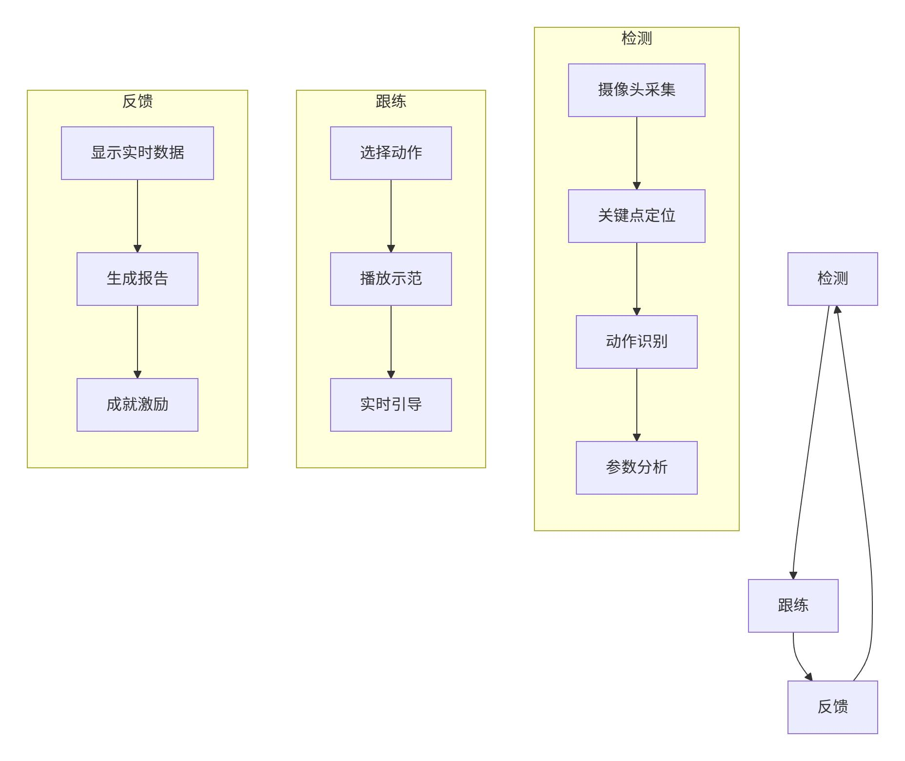 系统融合AI体感识别与游戏化运动指导,围绕“检测-跟练-反馈”的闭环逻辑,打造集动作识别、个性训练、互动激励、每日打卡和数据分析于一体的科学健身平台,致力于提供更具吸引力、可持续的智能运动解决方案,推动AI技术在健康生活方式中的深入应用。