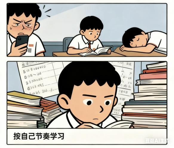 你说看到同学刷手机、趴着睡觉,自己也没心思学。其实完全不用管别人在做什么。那些刷手机的同学,可能也在纠结“该不该学”;那些趴着的,说不定是白天上课太累了。你不用跟着别人的状态走,按自己的节奏来就好。