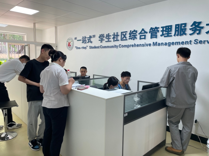 学校在强化学生社区育人队伍建设的同时,坚持以学生需求为建设目标,不断丰富学生社区服务供给,面向全体学生发布“关于征求入驻‘一站式’学生社区业务办理意见的调查问卷”2000份,调研学生关于社区业务办理实际需求。面向各职能部门发放《关于征集入驻“一站式”学生社区工作需求的函》28份,开展学生社区流动工位预约征集工作,持续延伸学生社区业务办理范围。学校积极推动招生就业处、学生工作处、安全保卫处、网络信息中心、图书馆、团委、大学生心理健康教育服务中心等部门陆续下沉学生社区,将就业三方协议审理、学生证办理、宿舍调换申请、医疗保险报销、家庭经济困难学生资助咨询与办理、VPN服务咨询、图书归还、团组织关系转接、银行卡信息变更等业务“搬”进学生社区,形成学生社区业务办理常态化、工作内容多元化、服务质量细致化的局面,学生办理业务效率大幅提升。截至目前,“一站式”学生社区综合管理服务大厅累计服务学生9800余人次,办结率为100%。
