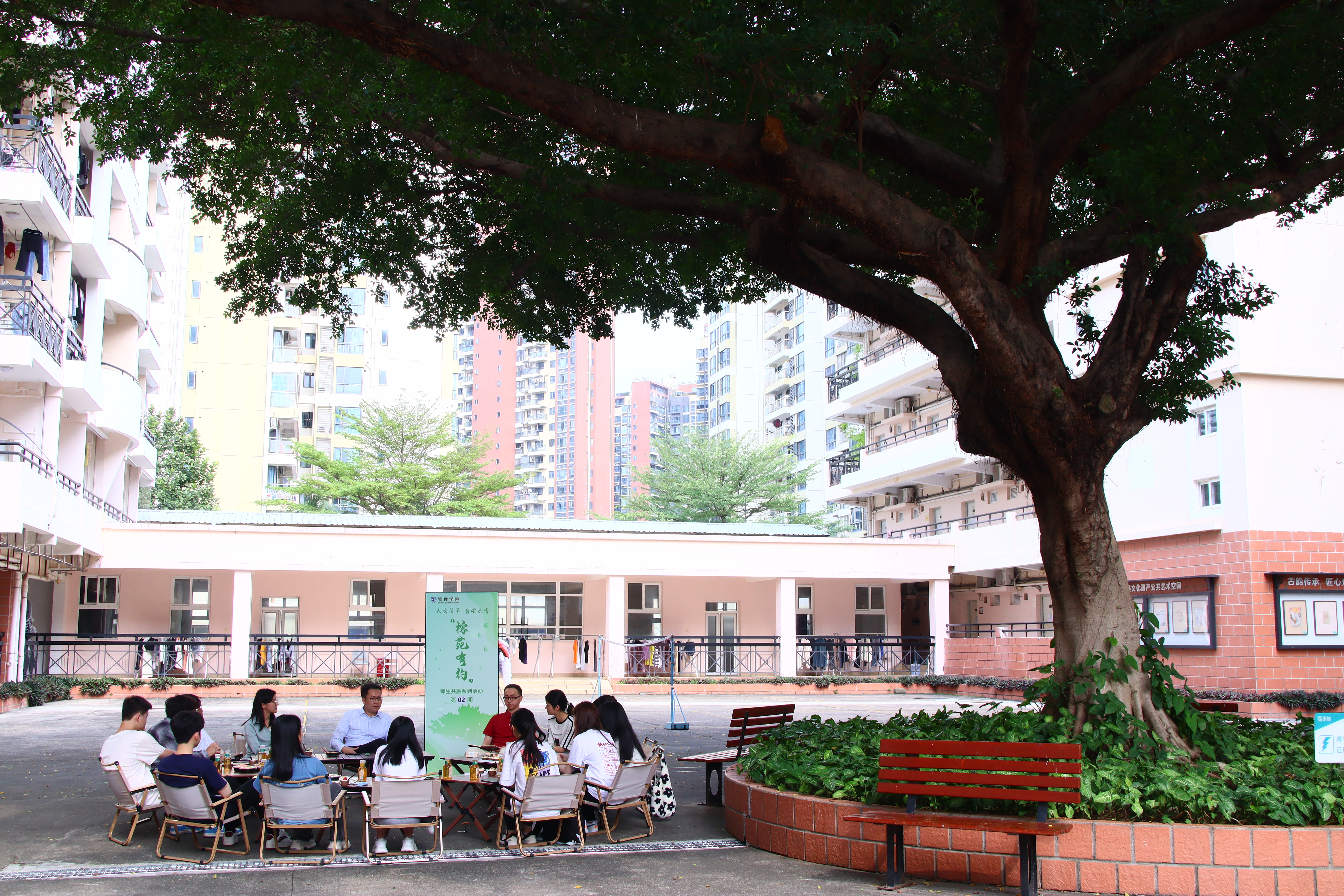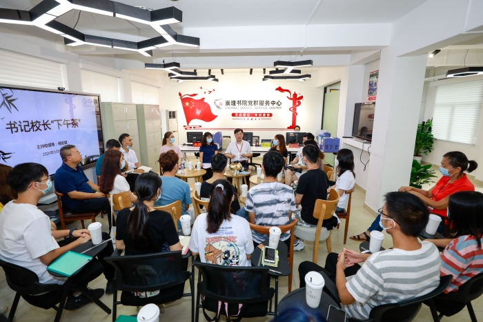 学校党委书记杨欣斌在学生社区与学生开展下午茶活动