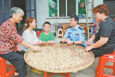 浙江诸暨市公安局枫桥派出所社区民警在村民家走访。  孙 超摄