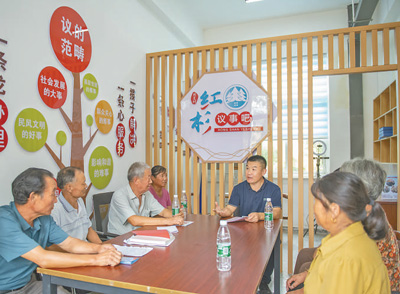 江苏宿迁市宿豫区大兴镇周夏村创建“红杉议事吧”,通过一站式接待、一条龙办理、一条心服务、一揽子解决模式,完善乡村治理。   徐江海摄