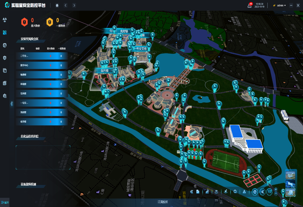 2016年以来,复旦大学以当前实验室管理中存在的问题为导向,数字化赋能实验室安全管理,整合实验楼宇内消防、技防、门禁、环境监测等系统,逐步探索出一套充分利用现有安全技术防范手段,采集“安防大数据”为相关职能部门防范、处置实验室安全事故提供数据支持,助力实验室安全管理水平的提升。建设内容主要包括:视频监控系统、门禁系统、人脸抓拍系统、电力监测系统、气体泄露报警系统、智能AI分析系统(试点)、实验室热成像测温系统(试点)、实验楼宇内外3D地图、智能安防联动平台等。建成治安防控、消防、门禁、突发事件处置、校园安全风险防范管理等于一体的综合安防可视化管理平台。已建成使用的“实验室安全防控系统”,在运行过程中起到了重大作用,发现并预警各类安全隐患,并能对发生的安全事件进行事前、事中、事后的全程有效记录,对事件回溯总结起到关键作用。由于告警及时,系统建成以后,相关实验室实现零火灾零伤亡安全运行。