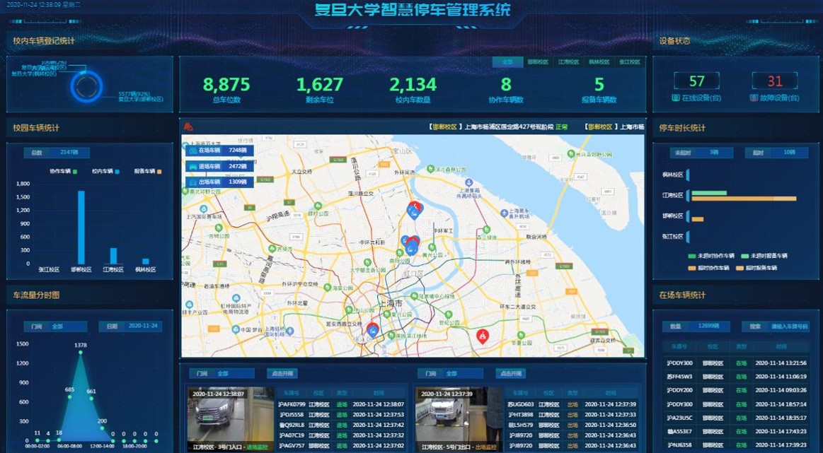 2019年开始,复旦大学利用数字化赋能,着眼学校交通安全管理的难点和痛点,加大投入力度,建设完成了云AI智慧校园机动车管理系统大平台。该平台集校门出入口智能道闸管理系统、校内违章停车和超速告警系统、违章处置与安全教育系统于一体。利用前端车辆专用功能抓拍机,收集车辆的出入记录、违停信息、超速信息汇总至监控中心,机动车智能综合管理服务平台对所有数据分析汇总后智能处置,并将处置信息同步反馈至校门口道闸管理系统。实现数据上传、判断、下发全过程自动处理,所有数据可在监控中心一屏统览,为管理人员提供直观的参考。对于校园超速违章,可实现线上处理,并通过安全教育线上学习来消除违停超速,将处置与教育同步进行。