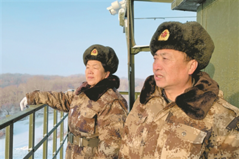 每天,马军武和张正美都会爬上瞭望哨认真观察边情。中国军网 孙伟帅摄