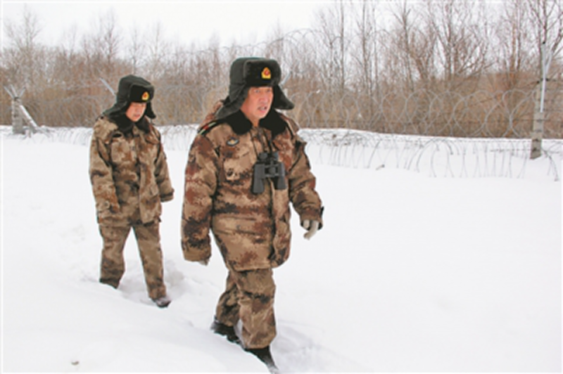 西北边疆冬季漫长,马军武和张正美不惧严寒,每日踏雪巡逻。杨东东摄