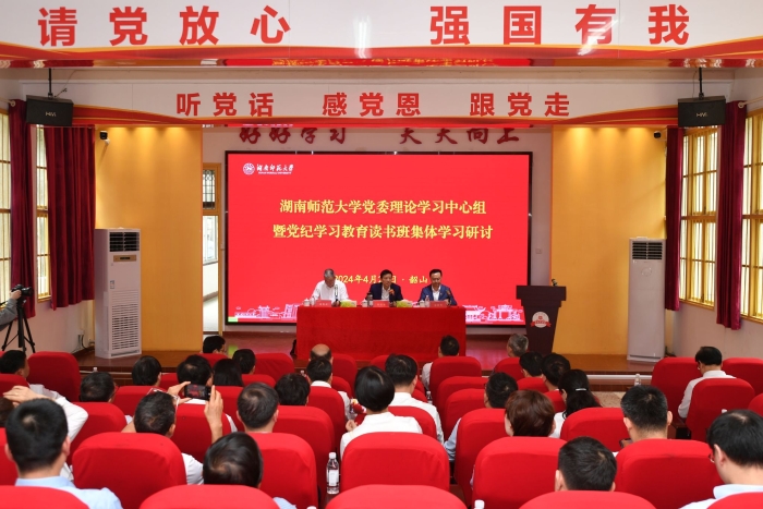 4月24日上午,湖南师范大学党委理论学习中心组暨党纪学习教育读书班赴韶山,通过“体验教学+专题辅导+集中研讨”的方式开展集体学习。湖南师范大学党委书记蒋洪新、校长刘仲华等全体在家校领导参加学习。
