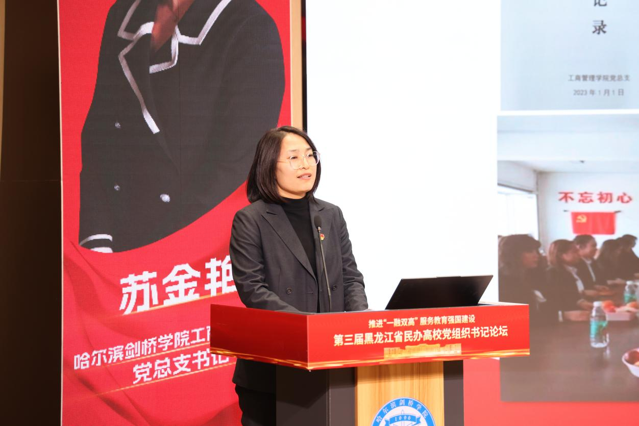 哈尔滨剑桥学院工商管理学院党总支书记苏金艳发言