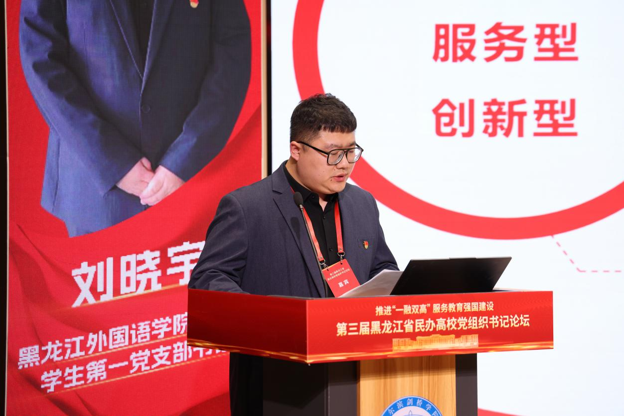 黑龙江外国语学院英语系学生第一党支部书记刘晓宇发言