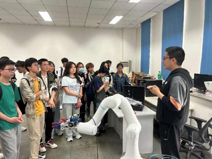 在“探访教研室,师兄师姐说”系列联建活动中,联建支部精心组织,认真策划,搭建起本科生与研究生、教师之间的深度交流桥梁。在教工仪二支部和研究生仪六支部先锋党员的带领下,同学们深入教研室,聆听“学院历史+学科风采”系列主题宣讲,全面了解学院的发展历程、学术积淀与学科前沿。这种浸润式的教育方式,极大地激发了同学们的科创兴趣,培养了他们对学院的归属感和荣誉感,为他们在后续的专业分流和深造决策提供了有益指导。本科二支部积极分子蒲照天说“在参观教研室之前,一直觉得教研室是一个很神秘的地方,这次跟着师兄师姐前往教研室,才真正感受到了科研的魅力,一个个机械臂和示波器,不同又相同,不同的是领域不同,相同的是都是师兄师姐和老师们夜以继日刻苦奋斗的结晶。这次参观教研室后,我对我们的专业和学科又有了新的认识,学习上的劲头也更足了!”