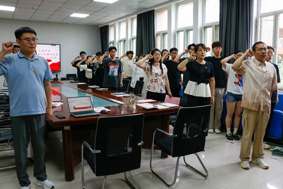 为庆祝中国共产党成立104周年,深入学习贯彻习近平新时代中国特色社会主义思想,齐鲁师范学院物理与电子工程学院党委于2025年7月策划开展“百年征程筑辉煌,初心如磐向未来”主题活动,通过“一次宣誓、一堂党课、一个生日、一张合影、一期实践”五大环节,将党纪教育、宗旨实践与组织建设深度融合,打造兼具政治性与实效性的党建育人品牌。