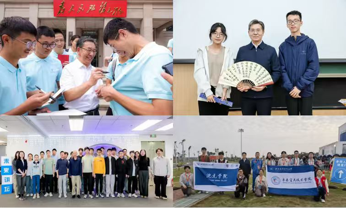 学院充分发挥北航院士名师资源优势,打造兼具思想性、专业性、引领性的课程思政品牌。在加快培养未来空天系统总师的未来空天技术学院,《未来空天技术导论》作为核心品牌课程,已连续第五轮开设,坚持每周邀请一位院士为新生拆解空天领域“从0到1”的创新密码,成为了学生们叩响空天之门的“成长阶梯”。十余位院士联袂接力,以空天技术前沿为切入点,讲述空天发展与未来挑战,深度融入国家战略需求、关键技术突破历程与科学家奋斗故事。在“未来·领航”课程实践中,学生们走进天津、成都、绵阳、上海的科研院所、先进制造工厂参观交流,在大国重器的实景中深化理论认知。为了回应新生们的追问求知,院士们有时甚至会与同学们探讨到深夜,他们谈起“啃下关键技术硬骨头”时眼里的光,让“逐梦九天、空天报国”的种子,在学子的青春里深深地扎下了根。