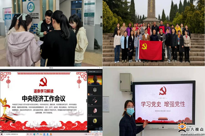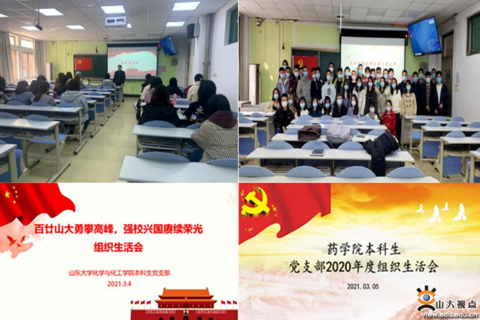 各学院凸显党支部在思想政治引领上的主体作用,着力提升党内政治生活质量和效果,以青年喜闻乐见的方式开展组织生活,有效提升学生党员参与热情。药学院开展“一颗红心”系列活动,打造符合药学院特色且与本科生息息相关的组织生活,将党建融入组织生活中。化学与化工学院成立党史专题研讨小组,以建党100周年和建校120周年为契机,加强理论学习,充分发挥党员先锋模范作用。马克思主义学院与饮食管理服务中心开展主题党日活动,共同探讨以饮食文化之美、劳动服务之美助力大学生成长的新思路。新闻传播学院采取“同心圆”管理模式,搭建党员、发展对象、积极分子之间稳定的沟通渠道。泰山学堂落实“两学一做”学习教育常态化,帮助提交入党申请书的同学明确入党动机,砥砺初心使命。齐鲁交通学院严格党员教育监督管理,开展思想学习讨论,破除思想壁垒。口腔医学院开展工作经验分享会,通过分享工作内容和管理方法,交流心得体会,相互学习借鉴,切实提高工作能力。微电子学院召开组织生活会,积极开展批评与自我批评,认真查摆问题,增强党性修养。软件学院组织读书心得分享会,交流中国共产党波澜壮阔的发展历程。护理与康复学院以研讨小组形式阅读《习近平谈治国理政》第三卷,定期交流研读心得,在文字中感受大国智慧。公共卫生学院集体阅读《习近平点赞奋斗者》,以此勉励支部党员积极投身于社会主义建设的伟大浪潮中。