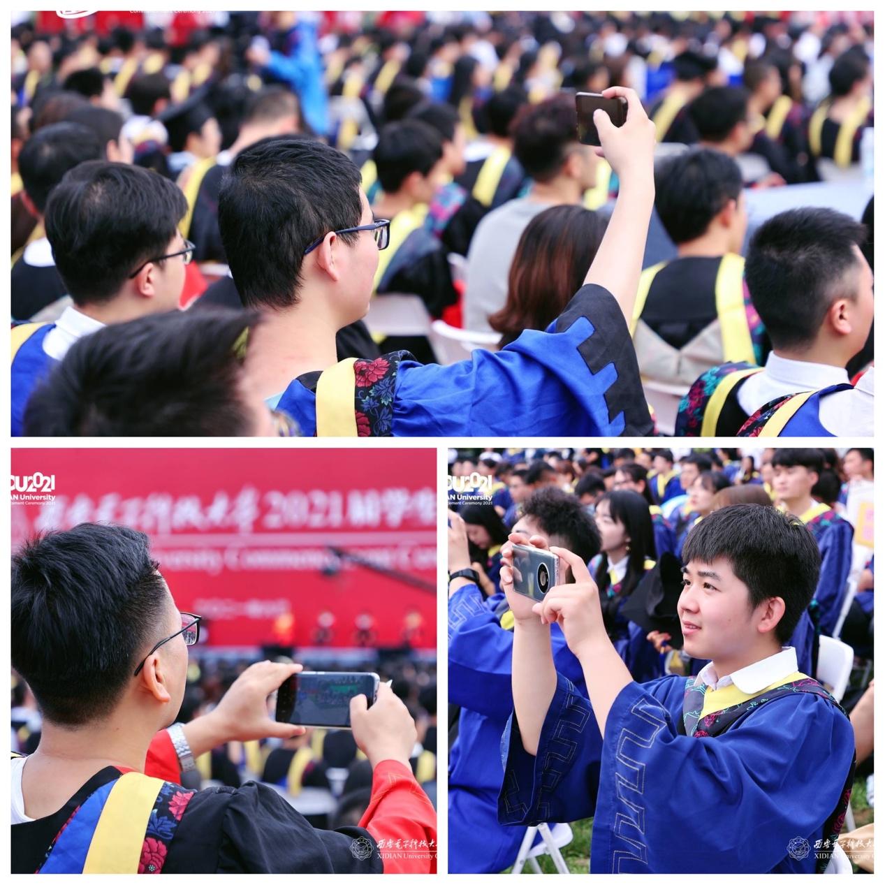 网络与信息安全学院2021届毕业生朱雨恒说道:“学校总是能搞出一些新花样,今天毕业典礼上的绿幕技术让我惊讶。这是学校对于科创氛围的引领,也更加坚定了我矢志不渝、科技报国的信念,这是每个西电人无愧于时代的使命,是我们滚烫的初心!”