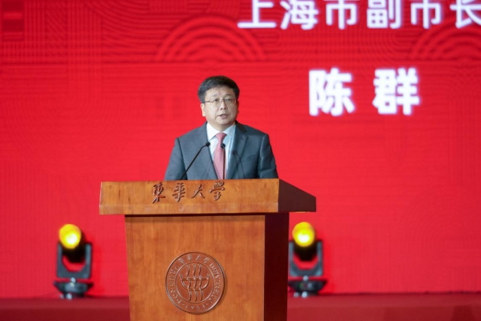 陈群代表上海市委、上海市人民政府向东华大学全体师生员工及海内外校友表示热烈祝贺。他讲到,作为新中国成立的第一所纺织高等学府,东华大学始终坚持为党育人、为国育才的初心使命,坚持社会主义办学方向,落实立德树人根本任务,发挥学科专业和人才优势,积极融入上海“五个中心”和社会主义现代化国际大都市建设,已成为上海人才培养的重要基地、文化传承的重要源流和科技创新的重要动力,成为推动上海发展不可或缺的重要力量,为国家和上海经济社会发展作出了突出贡献。面对新时代新形势,期待东华大学以建校70周年为新起点,立足服务国家和上海发展战略,全力推动学校事业创新发展,把发展科技第一生产力、培养人才第一资源、增强创新第一动力更好结合起来,加快推进“双一流”建设,奋力开创新时代学校发展新局面,早日实现“国内一流、国际有影响,有特色的高水平研究型大学”建设目标。