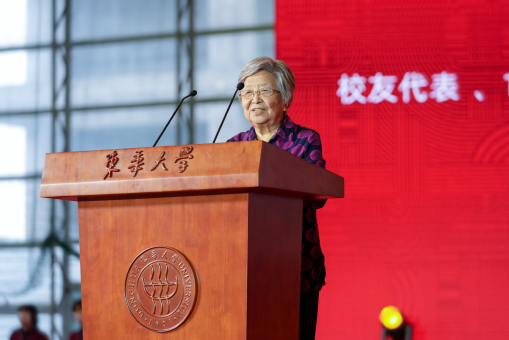 (黄宝妹作为校友代表发言)