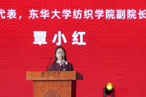 东华大学纺织学院副院长覃小红作为教师代表发言。从2001年五十周年校庆时入校求学、后留校任教至今,覃小红老师来到东华大学已经二十年。她感慨道,“这里有德高望重、言传身教的好老师,有敏而好学、德才兼备的好学生,还有世界领先、行业顶尖的一流纺织学科,一流的理念、一流的教育、一流的环境……我将继续发扬‘崇德博学 砺志尚实’的校训精神,为东华再创辉煌作出新的贡献。”