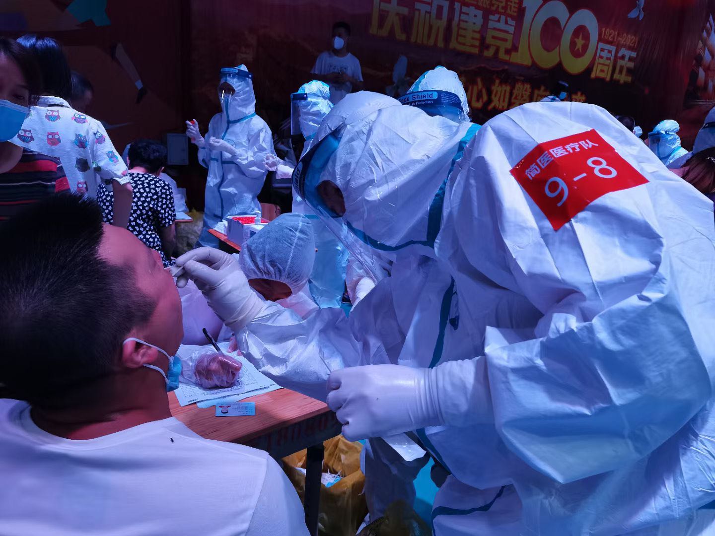 “疫情就是命令,党员就是战士。当听到医院选拔疫情防控人员时,我的心里突然一紧,脑子里就一个想法,一定要去,必须要去,这可能就是我当初选择学医的初心吧。”现在在峨眉山市人民医院实习的2018级护理学院陈志鸿同学说。同是2018级护理学院的邓绍鹏同学在简阳市人民医院规培期间听到选拔疫情防控人员的消息第一时间就申请报名参与,他被分到了成都理工大学核酸检测组。“恐怕一闭上眼睛我就能睡着”,夜以继日的高强度工作让这个强壮的小伙子也深感疲惫,但他还是凭借自己顽强的毅力和高度负责任的态度撑了下来,帮助防疫人员完成几十万人次的核酸检测工作。“在学校大学生预备役应急保障队训练时,教官就教导我们时有所需,必有所为,一呼百应,绝不退缩!最需要我的地方,我一定要去!”2019级体育学院的何岷格同学斩钉截铁地说到。此行和他一同参与成都市成华区理工东苑西区疫情防控工作的还有体育学院2019级社会体育专业的蒯秋、曾良超、甄喜前、尹安成和李春鸿同学。他们六位“战士”至今还工作在成都高风险地区,为那里的防疫工作安全稳定贡献自己的力量。